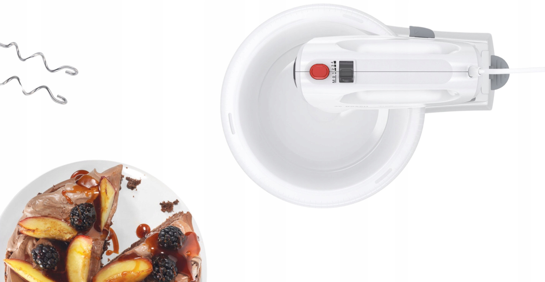 Dzięki mocnemu, ale jednocześnie cichemu silnikowi uzyskasz optymalne wyniki mieszania i ugniatania. Niezależnie od tego, czy są to mieszanki do ciast, babeczek, czy ciężkie ciasta drożdżowe do pizzy, ten silny mikser ręczny sprosta zadaniu.