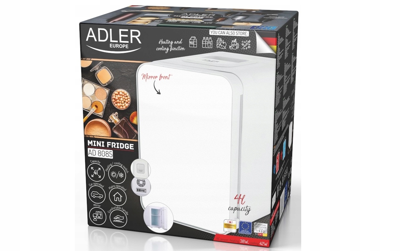 Mini lodówka sprawdzi się podczas długich wyjazdów, jest idealna na prezent dla zawodowych kierowców oraz działkowiczów. Będzie też ładnie wyglądać w sypialni, jeśli chcesz przechowywać swoje kremy i inne kosmetyki w odpowiedniej temperaturze. Jej ciekawy design czyni z niej ozdobę samą w sobie, a lustro optycznie powiększy pomieszczenie i będzie odbijać światło dzienne, rozjaśniając ciemne pokoje.