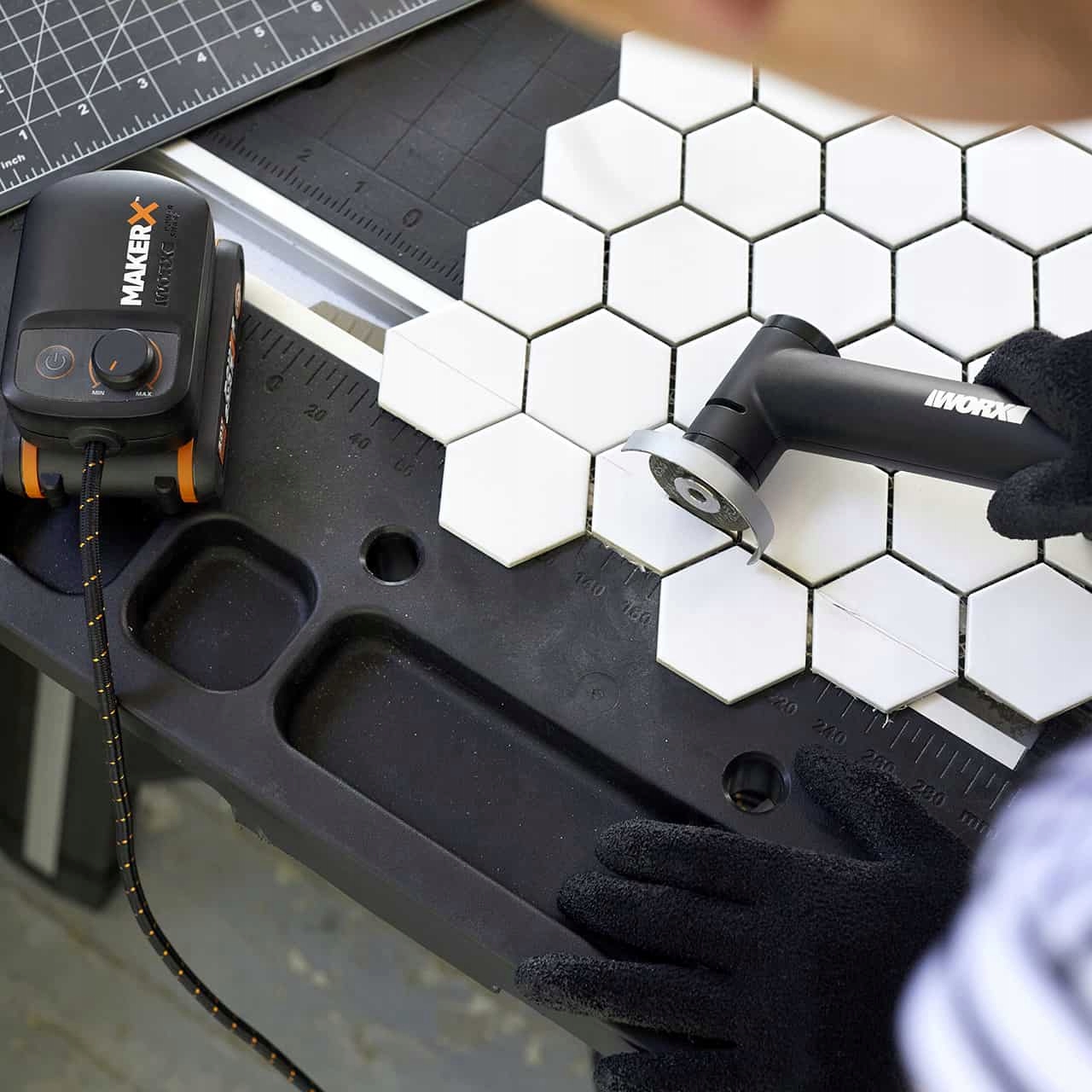 - Miniszlifierka kątowa MakerX jest niewielka i poręczna, a jednocześnie ma moc wystarczającą do cięcia cienkich blach i wycinania skomplikowanych kształtów.