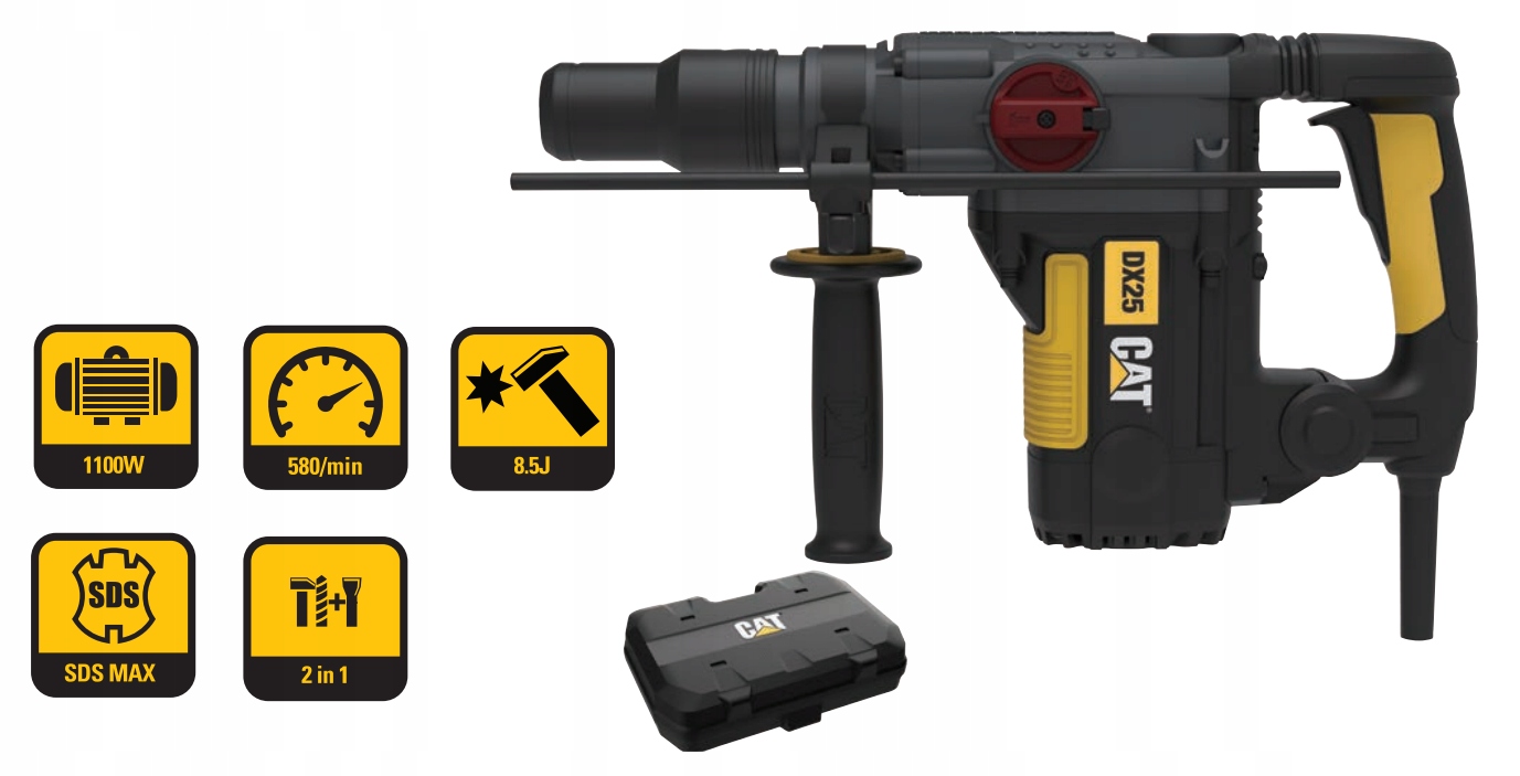 Młot udarowy CAT DX25 SDS-Max z silnikiem pionowym 1100W Energia udaru 8,5J