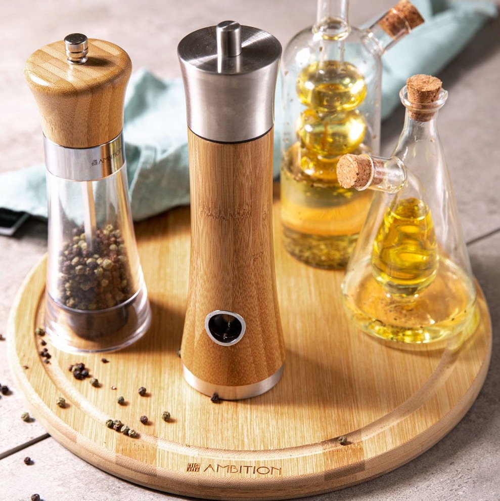 Młynek do pieprzu lub soli sprawdzi się idealnie w domu, w którym lubi się gotować. Nie tylko praktyczny ale także dobrze prezentujący się w stylowym miejscu. Posiada ceramiczny trwały mechanizm mielący. Wyprodukowany przez znaną markę Ambition.