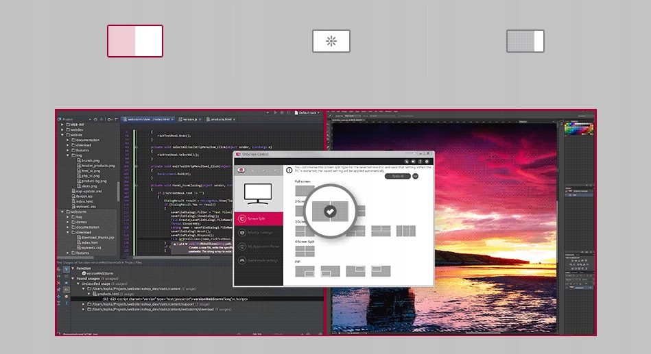 Za pomocą kilku kliknięć myszką, można podzielić przestrzeń roboczą lub zdefiniować podstawowe ustawienia monitora.
