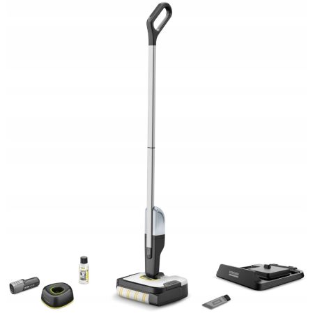 Mop elektryczny FC 2-4 cechuje się możliwością postawienia urządzenie bez opierania, niewielką wagą wynoszącą zaledwie 2,2 kg oraz automatycznym włączaniem i wyłączaniem. Aby rozpocząć wygodne i równoczesne usuwanie codziennych, mokrych i suchych zanieczyszczeń, wystarczy do tyłu pociągnąć za uchwyt. Maksymalny czas pracy na jednym ładowaniu wynosi 20 minut, co umożliwia wyczyszczenie obszaru o powierzchni do 70 metrów kwadratowych. Po uruchomieniu urządzenia, pad jest automatycznie zwilżany wodą ze zbiornika czystej wody. To zapewnia równomierne oraz skuteczne czyszczenie twardych posadzek. Urządzenie potrafi czyścić wzdłuż krawędzi, a dzięki zintegrowanemu filtrowi z łatwością usuwa włosy i sierść. Zintegrowany i higieniczny zbiornik zanieczyszczeń pozwala uniknąć bezpośredniego kontaktu z zanieczyszczeniami. Może zostać zdemontowany i wyczyszczony bezpośrednio po zakończeniu sprzątania. 4 V akumulator Kärcher Battery Power dostarczany z urządzeniem jest kompatybilny ze wszystkimi 4 V urządzeniami Kärcher Battery Power.