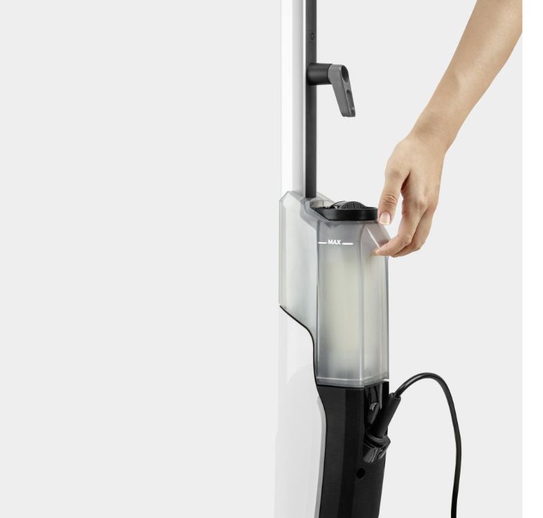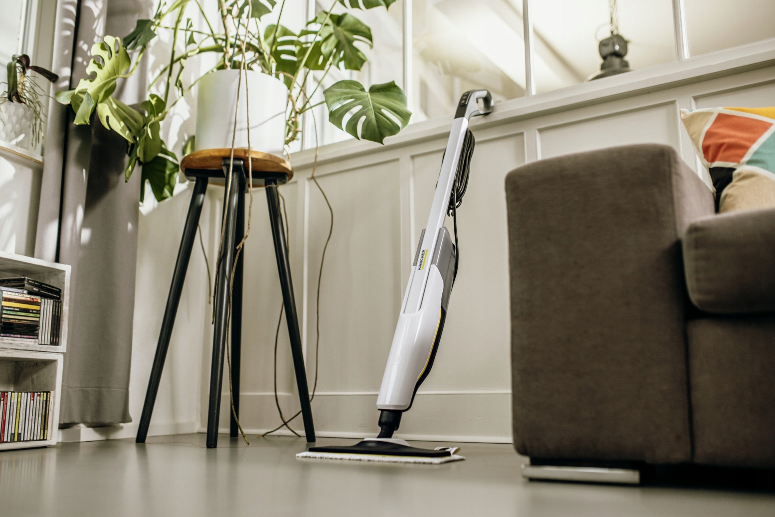 Usuwanie zanieczyszczeń za pomocą pary wodnej: mop parowy Kärcher SC 2 Upright EasyFix czyści wszystkie posadzki twarde o zamkniętej strukturze — nawet drewniane. Dzięki zintegrowanej, łatwej w obsłudze 2-stopniowej kontroli przepływu pary mop Kärcher usuwa do 99,999% koronawirusów* oraz 99,99% wszystkich bakterii** powszechnie występujących w gospodarstwach domowych. Mop nagrzewa się w mgnieniu oka i jest natychmiastowo gotowy do użytku dzięki napełnianemu i wyjmowanemu pojemnikowi na świeżą wodę, który wyposażony jest również we wkład odkamieniający. Kolorowe kontrolki LED na uchwycie wskazują stan pracy urządzenia. Doskonałe połączenie: aby zapewnić jeszcze dokładniejsze czyszczenie i szybką zmianę ściereczek bez kontaktu z zanieczyszczeniami, ściereczki z mikrofibry Kärcher mocuje się do dyszy podłogowej EasyFix na rzep.