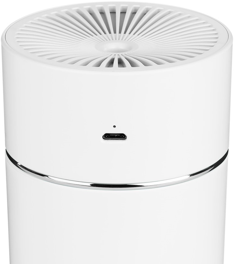 Mini nawilżacz powietrza zasilany jest z wbudowanego portu USB. W zestawie znajduje się kabel zasilający USB o długości 1 metra (brak adaptera).