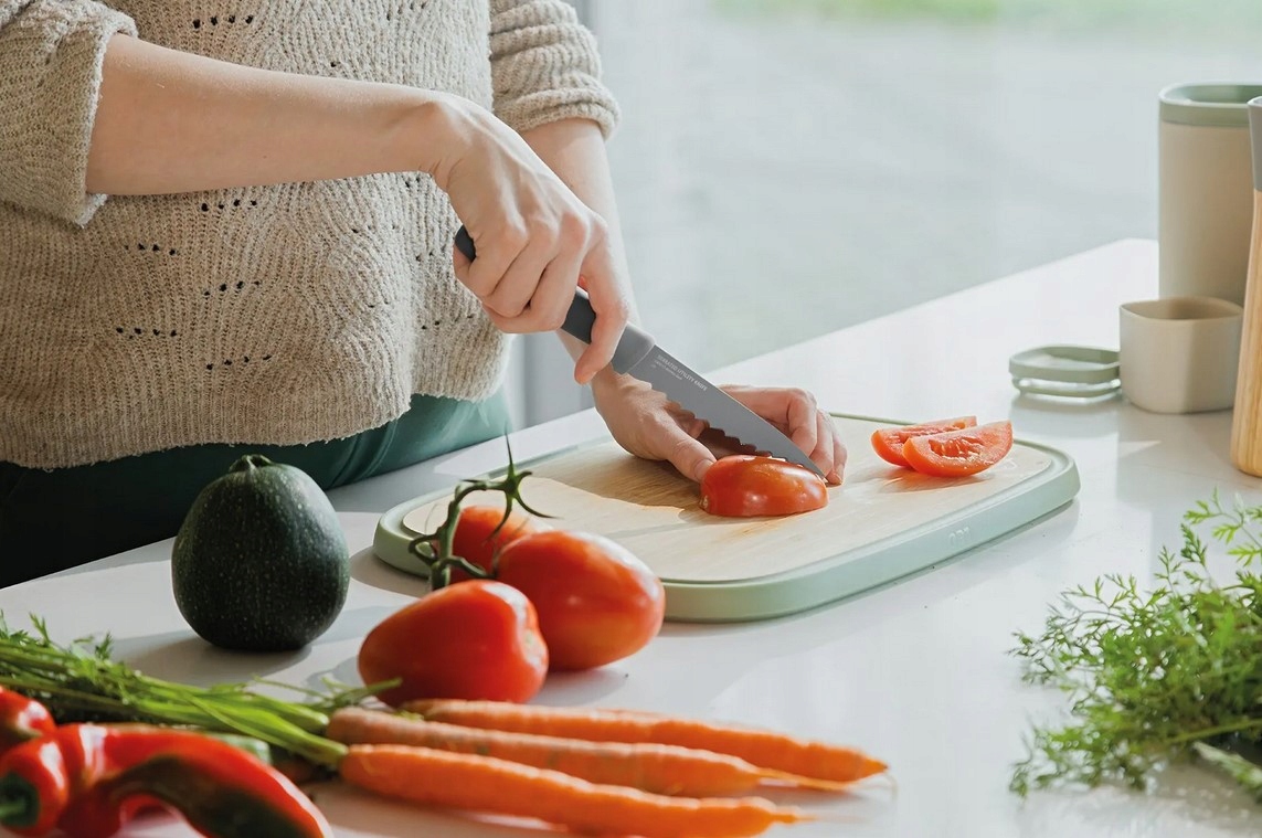 Nóż Leo do obierania i krojenia ziemniaków, jabłek lub łuskania krewetek. Uniwersalny i wygodny do wielu różnych zadań związanych z przygotowywaniem posiłków. Mniejsze ostrze ze stali nierdzewnej jest idealne do precyzyjnych prac, a spiczasta końcówka może być również używana do usuwania oczek z ziemniaków lub nasion np. z papryki chili. A jeżeli, tak jak my, dbasz o bardziej zieloną przyszłość, z pewnością docenisz fakt, że rączka noża wykonana jest z tworzywa pochodzącego z recyklingu.