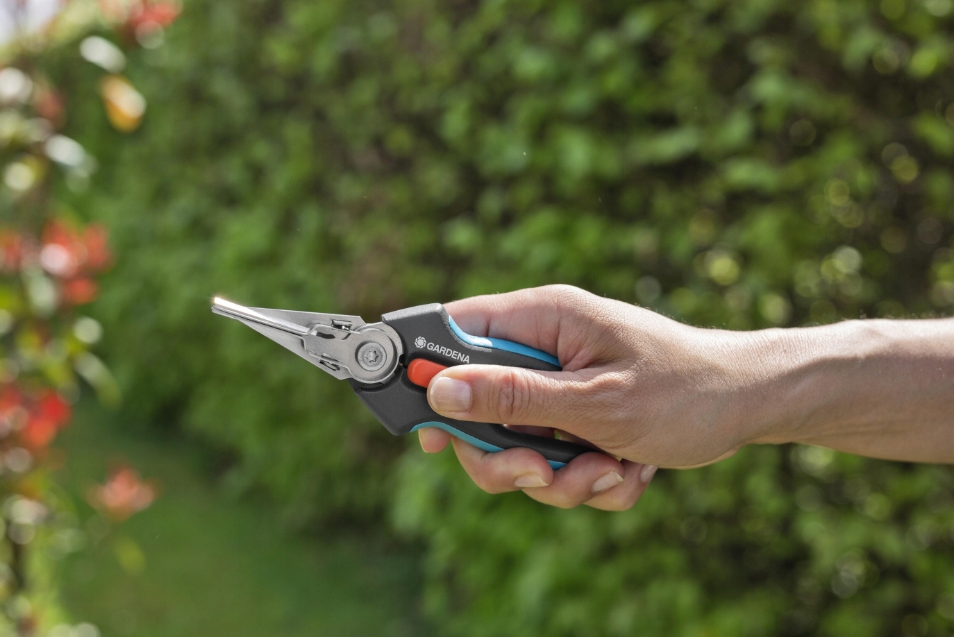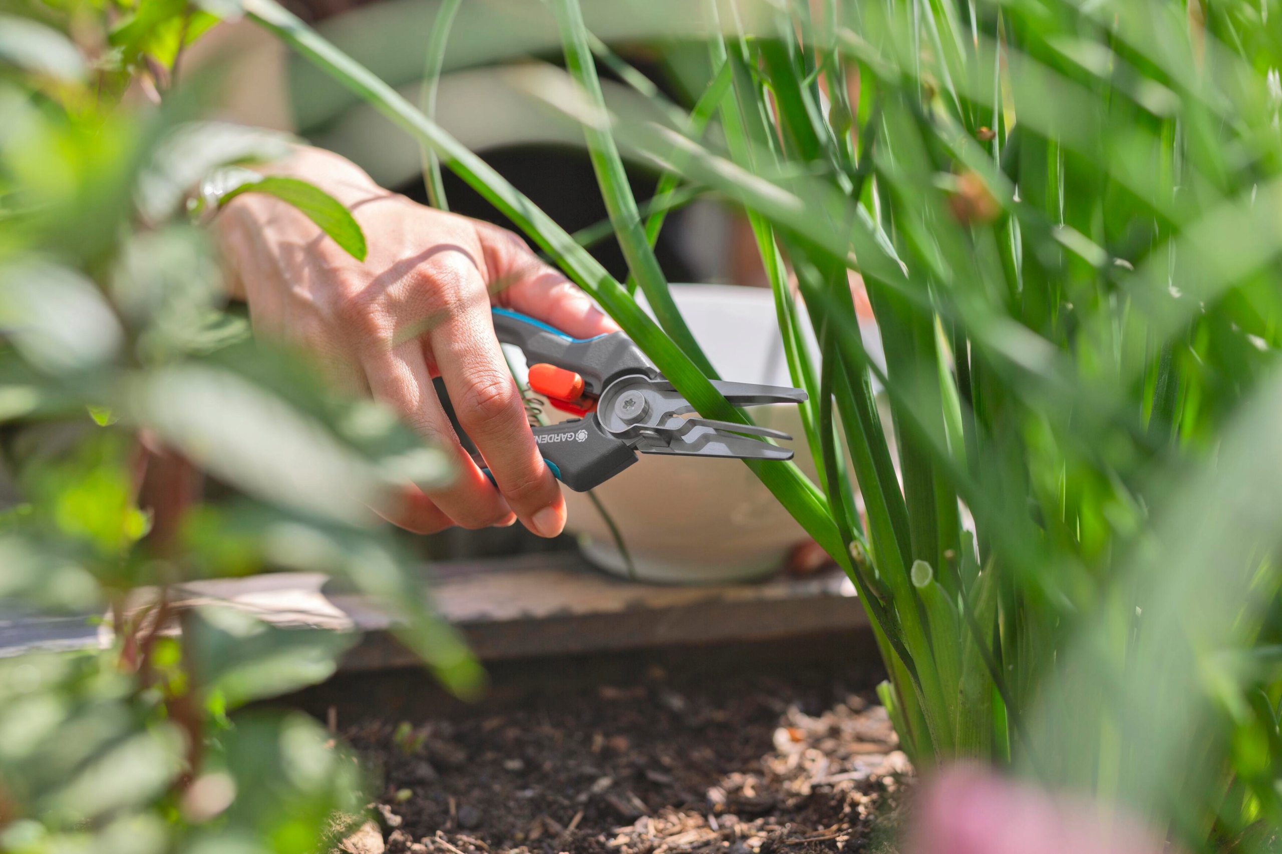 Nożyce do ziół i warzyw GripCut od GARDENA umożliwiają jednoczesne cięcie i przytrzymywanie roślin jedną ręką dzięki wbudowanej funkcji chwytania. Wszechstronność GripCut jest niezwykle przydatna: można ciąć rośliny, takie jak pietruszka czy szczypiorek, jednocześnie je przytrzymując. Ułatwia to zbieranie papryczek chili, gdyż palce są chronione przed ostrym sokiem. Nie trzeba się obawiać upuszczenia zbiorów, a jedna ręka pozostaje wolna i można w niej trzymać miskę lub sitko, dzięki czemu nie trzeba się schylać do pojemnika na ziemi. Wysokiej jakości, trwałe ostrza ze stali nierdzewnej doskonale radzą sobie z cięciem. Ich ostrość zapewnia czyste i precyzyjne cięcie po same końcówki. Ergonomiczne rękojeści ErgoTec z miękkimi elementami sprawiają, że nożyce doskonale leżą w dłoni i się z niej nie wyślizgują. Blokada uruchamiana jedną ręką pomaga bezpiecznie zamknąć GripCut na czas przechowywania. Ostrza są dopuszczone do kontaktu z żywnością, co oznacza, że nie wpływają na jej smak ani zapach. Dla łatwego czyszczenia wystarczy zdemontować chwytak, a następnie umieścić go w zmywarce wraz z nożycami GripCut.