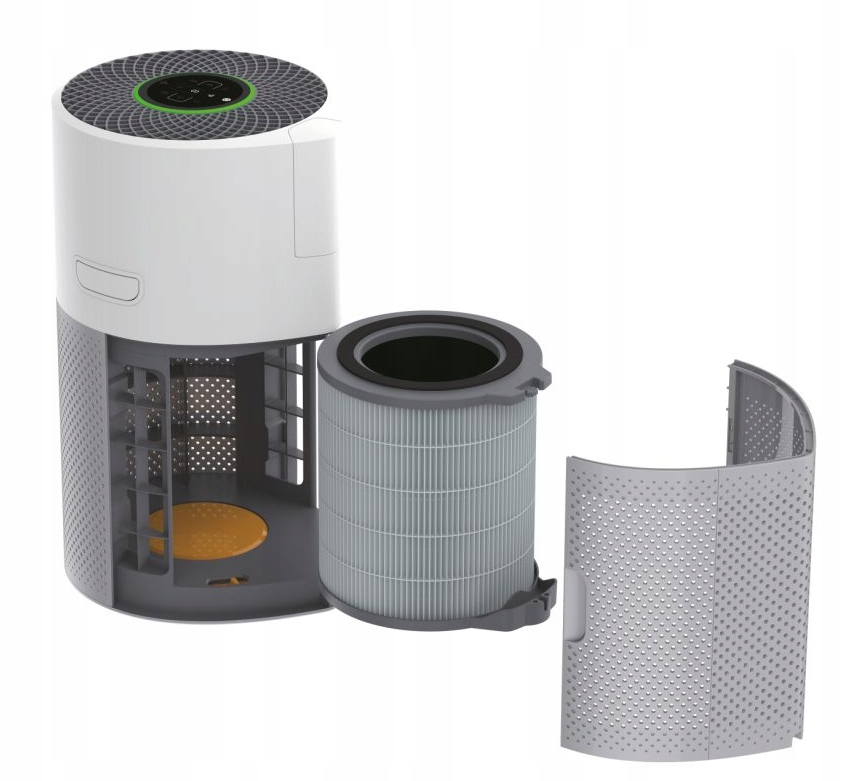 3-stopniowa filtracja zapewnia ochronę przed zanieczyszczeniami o wielkości od 0,01 µm (mikrometra). Pierwsza warstwa przechwytuje największe cząstki, takie jak sierść i kurz. Filtr HEPA H13 usuwa alergeny, roztocza, zarodniki pleśni, bakterie oraz pyły (PM10 i PM2,5). Filtr z węglem aktywnym absorbuje zanieczyszczenia gazowe (VOC, NO2), dym papierosowy i nieprzyjemne zapachy.