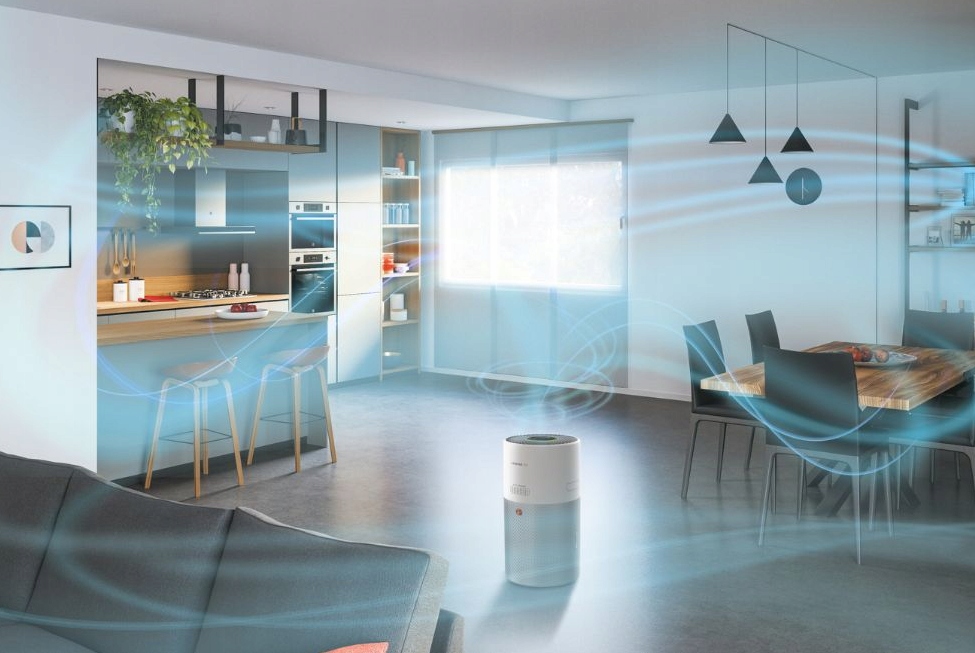 Inteligentne czujniki nieustannie kontrolują jakość powietrza w pomieszczeniu w zakresie pyłów zawieszonych (PM10 i PM2,5) oraz lotnych związków organicznych (pochodzących m.in. z dezodorantów, detergentów, klejów, spoiw i kosmetyków).