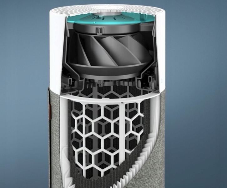Tkaninowy filtr wstępny stanowi pierwszy stopień ochrony, wychwytując duże cząstki, co wydłuża żywotność filtra podstawowego. Kombinowany filtr Particle + Carbon wykorzystuje warstwę węgla aktywnego do usuwania lekkich zapachów zwierząt domowych, gotowania i palenia, podczas gdy główny filtr cząstek przechwytuje unoszące się w powietrzu cząstki, takie jak pyłki, kurz, sierść i złuszczony naskórek zwierząt domowych i inne.