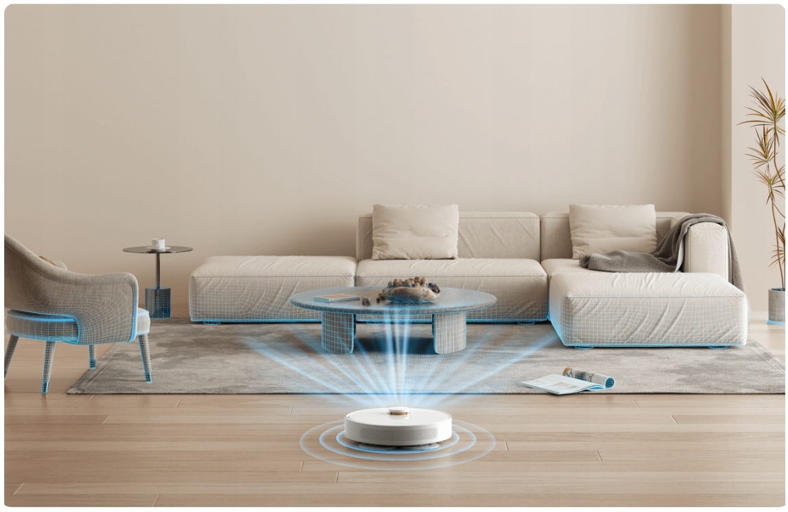 Identyfikacja przeszkód na poziomie milimetra. Nie więcej niż 5 mm* marginesu błędu między wykrytą odległością a rzeczywistą odległością. Robot precyzyjnie omija przeszkody i chroni pomalowane powierzchnie mebli, znacznie zmniejszając ryzyko utknięcia i zapewniając mniej kolizji nawet przy słabym oświetleniu.