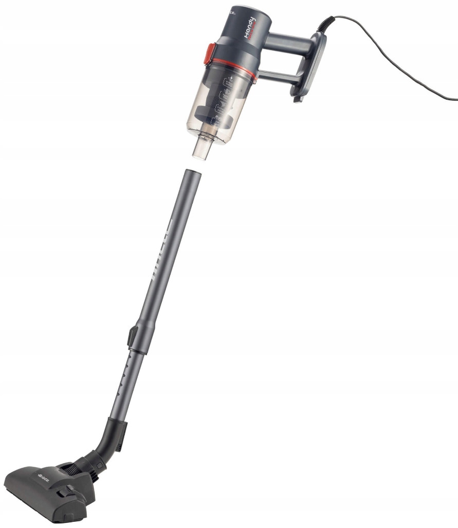 HandyForce One 2708 to odkurzacz 2 w 1, który z łatwością zamienia się w podręczne urządzenie, idealne do sprzątania samochodu, mebli tapicerowanych czy trudno dostępnych miejsc. Jego teleskopowa rura oraz 5-metrowy przewów zapewniają swobodę ruchu, dzięki czemu odkurzanie staje się szybkie i efektywne. Dzięki technologii cyklonowej, urządzenie skutecznie usuwa kurz oraz brud, a specjalna konstrukcja vacuum power zapewnia wysoką moc ssania, niezależnie od stopnia zapełnienia zbiornika.