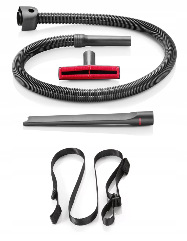 - Zestaw akcesoriów składający się z: węża i paska na ramię, ssawki szczelinowej, do tapicerki meblowej i samochodowej – idealne do odkurzania tapicerki, szczelin i trudno dostępnych miejsc