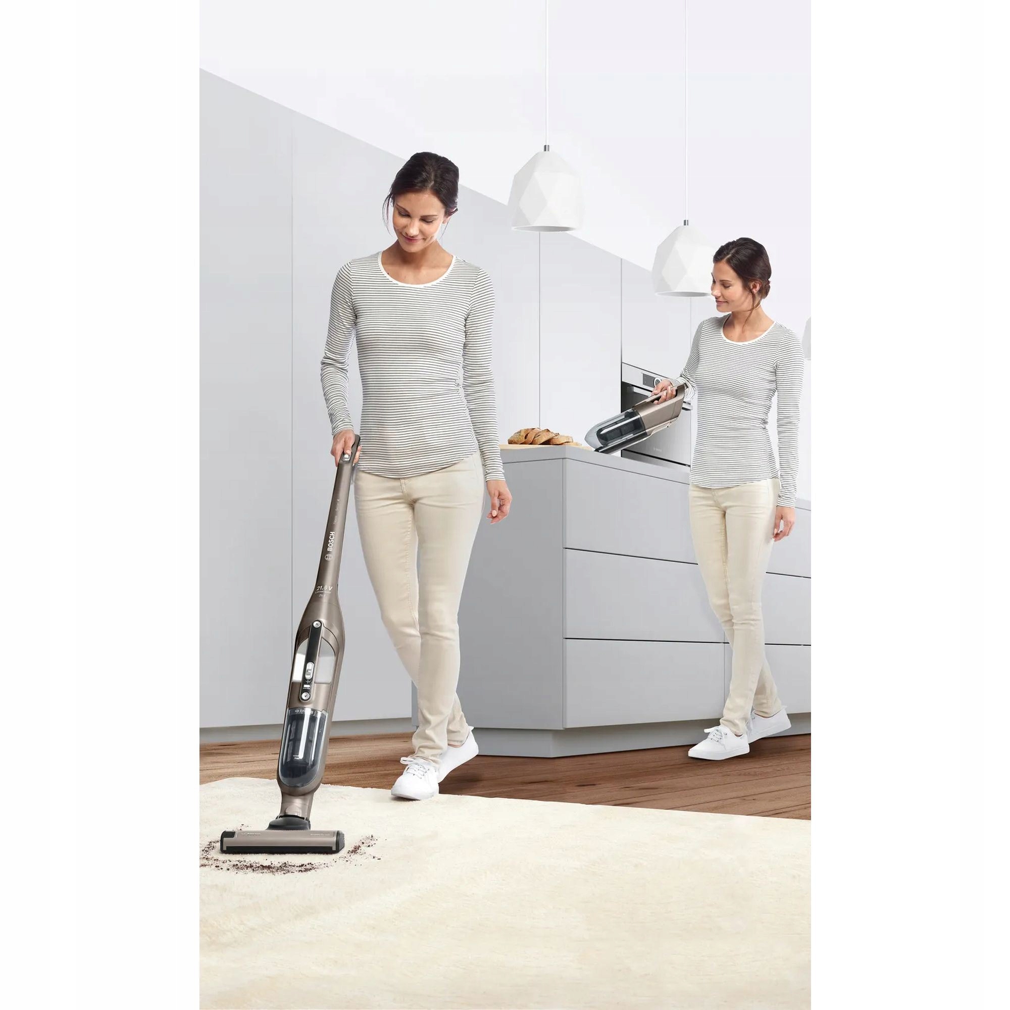 Wygodne rozwiązanie 2w1: odkurzacz pionowy i ręczny w jednym urządzeniu. Odkurzaczem pionowym, wyposażonym w elektroszczotkę, szybko odkurzysz podłogi. Moduł odkurzacza ręcznego można łatwo wyjąć i wygodnie odkurzyć meble i tapicerkę. Łatwo nim odkurzysz również okruszki ze stołu jak i zakamarki szuflad. Jest zawsze pod rękę wtedy, kiedy go potrzebujesz.