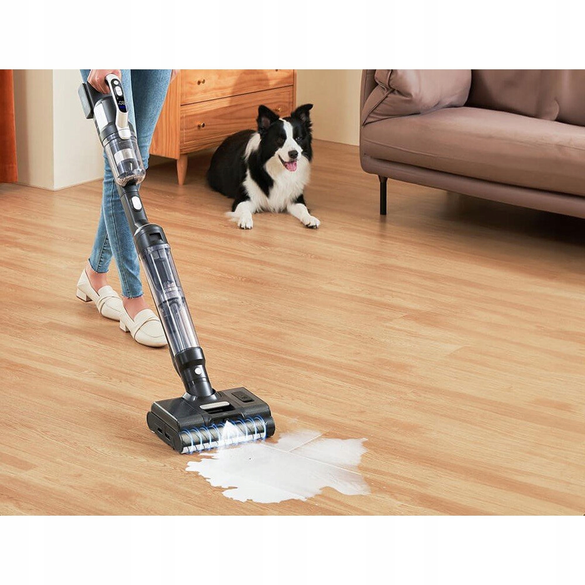 Mocne ssanie do dokładnego czyszczenia typowych mokrych i suchych plam w domu, takich jak ślady stóp, kawa, mleko, jogurt, sierść zwierząt itp. Usuwa także rozlany makaron, sos pomidorowy i wszelkie trudne plamy.