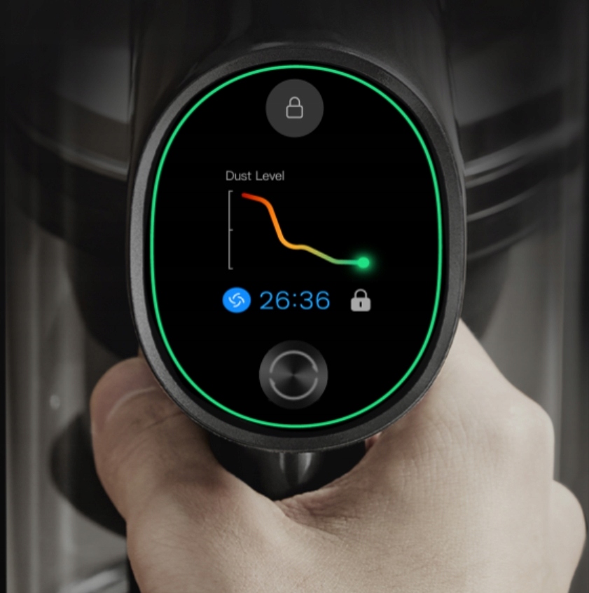 Dreame T30 posiada inteligentny wyświetlacz HD, za pomocą którego możesz śledzić pracę urządzenia. Na ekranie wyświetlą się takie informacje jak dane czyszczenia, poziom pyłów czy elektryczna blokada. Masz również możliwość przełączenia trybu siły ssania oraz na czas dowiesz się o pozostałym czasie pracy. Na wyświetlaczu pojawi się również przypomnienie wymiany filtra lub o napotkanych błędach instalacji.