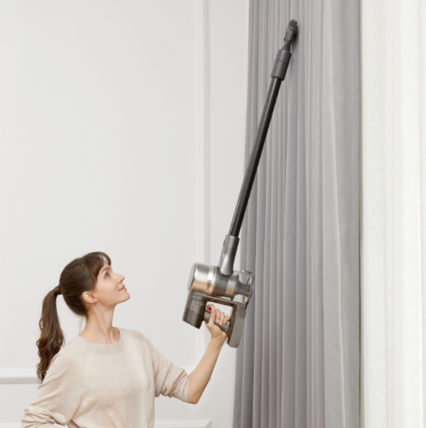 Dreame zadbało o to, aby użytkowanie T30 było jak najbardziej komfortowe, dlatego z łatwością wyczyścisz powierzchnie pod meblami. Natomiast, czyszczenie na wysokości będzie łatwiejsze dzięki ultra lekkiej dyszy z włókna węglowego.
