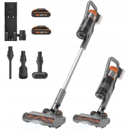 Odkurzacz pionowy WORX z dwoma wysuwanymi akumulatorami litowo-jonowymi, które zapewniają nieprzerwany czas pracy przez 44 minuty. Wydajny silnik bezszczotkowy gwarantuje zasysanie o mocy 25 kPA zarówno na twardych powierzchniach, jak i wykładzinie.