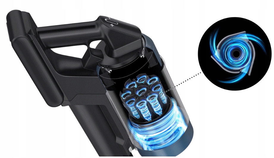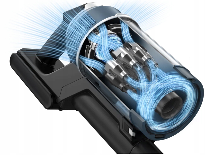 Dzięki wysokowydajnej, wielocyklonowej technologii Jet Cyclone możesz cieszyć się czystszym powietrzem i ekstremalną mocą ssącą. System obejmujący 9 cyklonów i 27 wlotów powietrza tworzy optymalną ścieżkę, która umożliwia zminimalizowanie strat ssania. Jednocześnie wychwytuje drobne cząsteczki kurzu.