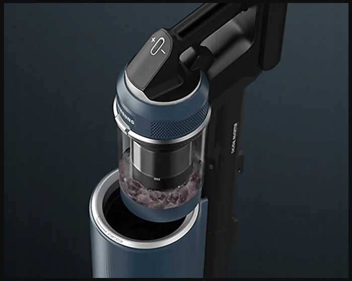 Stacja All-in-One jest zintegrowaną z odkurzaczem BESPOKE Jet stacją czyszczącą i ładującą. Automatycznie usuwa zawartość pojemnika na kurz jednym przyciskiem i to bez wzbijania kurzu w powietrze. Technologia Air Pulse™ sprawia, że pojemnik na kurz jest automatycznie opróżniany do worka w stacji czyszczącej, nie dopuszczając do wydobywania się drobinek kurzu do otoczenia, a specjalny worek na kurz zamontowany w stacji aż do 99,9%* ogranicza rozprzestrzenianie się bakterii.