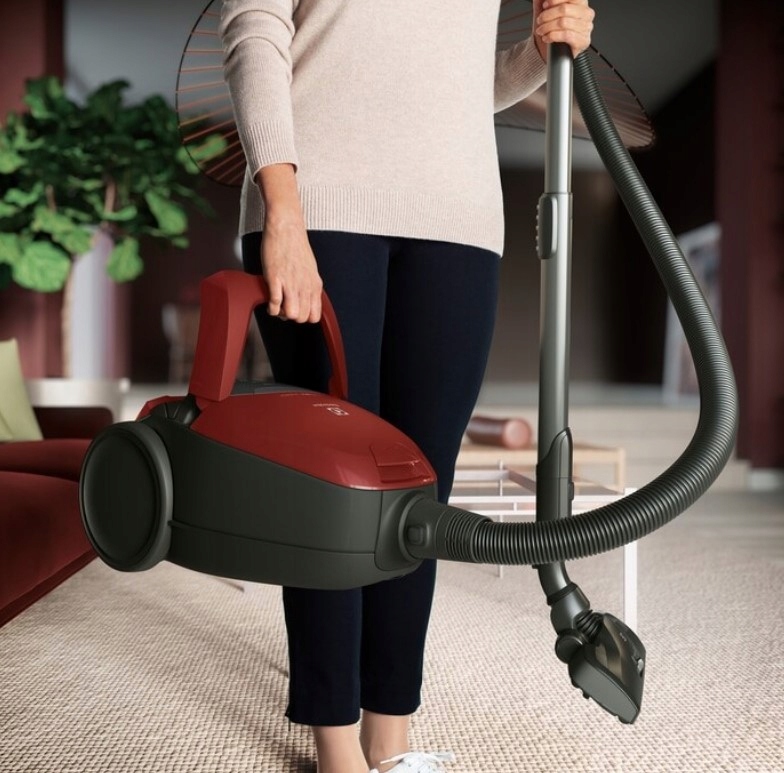 - Miękkie koła: tłumią hałas, chronią podłogę oraz zapewniają łatwe i wygodne manewrowanie odkurzaczem.