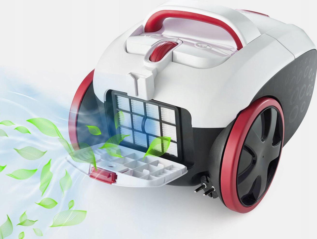 Filtr HEPA eliminuje ponad 99% cząsteczek z powietrza, które jest wydmuchiwane przez odkurzacz. Niezbędny dla osób cierpiących na astmę lub alergię.