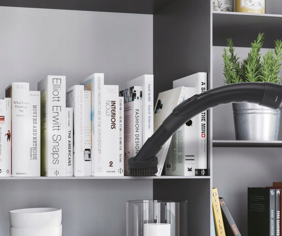 Szczelinówka, szczotka do odkurzania i ssawka do mebli są schludnie przechowywane na tubie dzięki wygodnemu uchwytowi. Zawsze pod ręką!