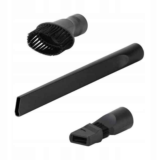 - Załączone wyposażenie: 3 worki HEPA w zestawie, chromowana rura teleskopowa, duża szczotka uniwersalna, turboszczotka mini, okrągła szczotka z włosiem, ssawka szczelinowa 2 w 1, długa ssawka szczelinowa, szczotka do parkietu, mała ssawka, zestaw filtrów, uchwyt do mocowania akc