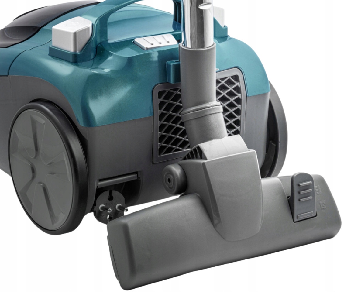Odkurzacz wyposażono w teleskopową rurę, która umożliwia dostosowanie długości do wzrostu użytkownika, oraz gumowe kółka, które chronią podłogi przed zarysowaniami.