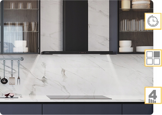 Dzięki funkcji Timer nie musisz czekać już po skończonej pracy, aż okap pozbędzie się wszystkich zapachów. Ustaw czas pracy urządzenia, by pozbyło się resztek oparów nawet, kiedy nie ma Cię w domu. A oszczędność czasu to więcej możliwości poświęcenia go tym, których kochamy!