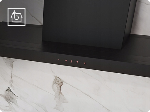Dla tych, którzy wolą sami decydować o intensywności pracy okapu, pozostawiliśmy sterowanie dotykowe. Zupełnie płaski panel sterowania ułatwia czyszczenie i sprawia, że urządzenie prezentuje się stylowo.