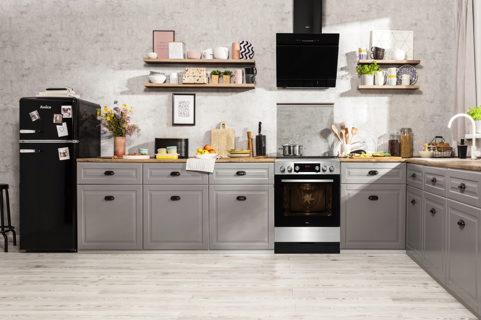 Ubrania, zasłony czy narzuty przesiąknięte kuchennymi zapachami? Nie z okapami Amica! Nasze okapy wyposażone zostały w nowoczesne i niezwykle wydajne turbiny, które całkowicie usuną kuchenne zapachy. Zyskaj pełen komfort pracy w kuchni!