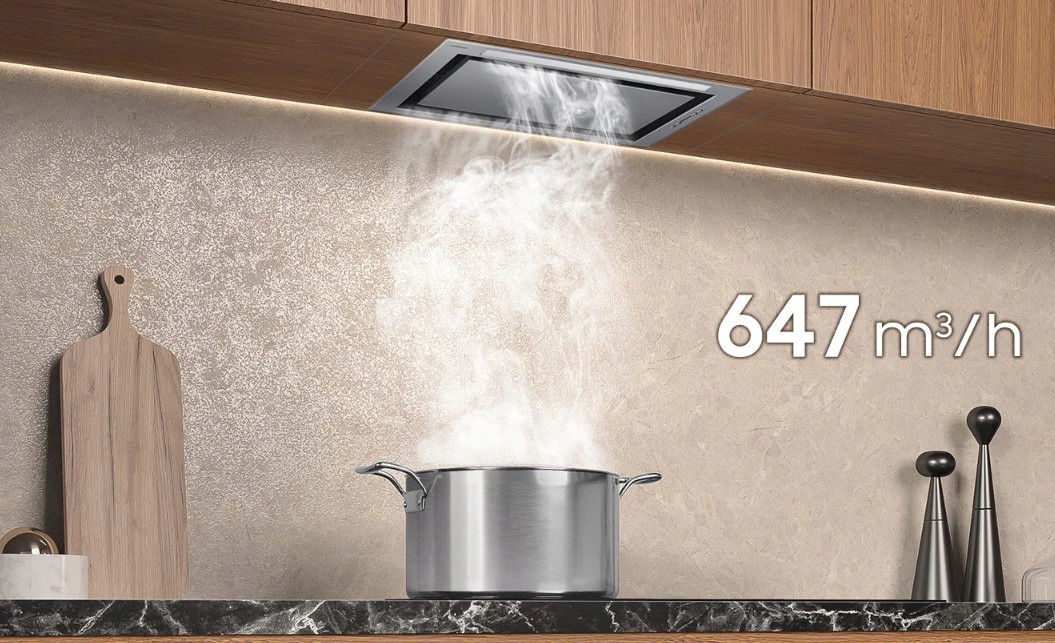 Ciesz się komfortową przestrzenią gotowania. 3-stopniowa moc wyciągu skutecznie eliminuje parę, opary i zapachy. Możesz dostosować moc na 3 poziomach: niskim, średnim i wysokim oraz skorzystać z trybu Boost, jeśli chcesz uzyskać imponującą wydajność 647 m3/h*.