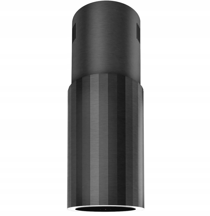Okap wyspowy Ciarko Roto W w kształcie tuby. Moc całkowita 174 W. Kolor czarny.