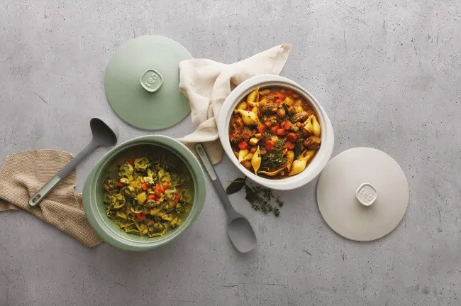 Okrągłe naczynie do pieczenia z pokrywą jest idealne do przygotowania jednodaniowego dania w stylu slow cooking.