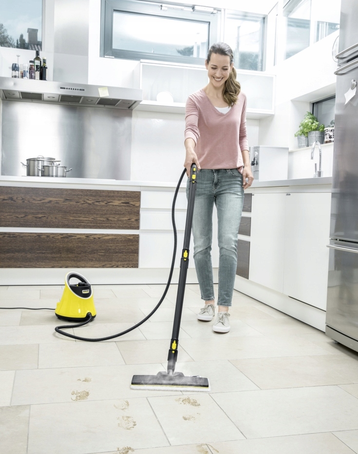Parownica doskonale sprawdza się na wszystkich wodoodpornych powierzchniach. Czyści podłogi, kafelki na ścianach, kabiny prysznicowe i sanitariaty, lustra, okna, piekarniki, blaty kuchenne, okapy, kaloryfery oraz drobne elementy takie jak armatura czy fugi. Bez szkodliwej chemii i przy minimalnym zużyciu wody, a więc oszczędnie i ekologicznie. Wskaźnik LED na rączce wyświetla aktualny tryb pracy. Akcesoria mogą być przechowywane w osobnej torbie lub bezpośrednio na urządzeniu. Ssawka podłogowa EasyFix gwarantuje ergonomiczną pracę i dzięki technologii lameli zapewnia doskonałe rezultaty czyszczenia. System EasyFix umożliwia zdejmowanie i zakładanie pada bez potrzeby schylania się unikając kontaktu rąk z brudem.