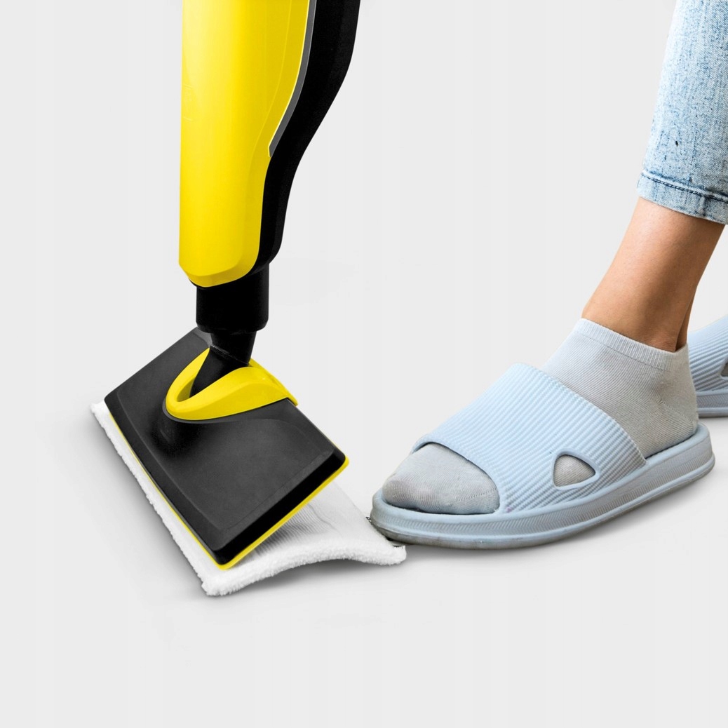 Usuwanie zanieczyszczeń za pomocą pary wodnej: parownica Kärcher SC 2 Upright EasyFix czyści wszystkie posadzki twarde o zamkniętej strukturze — nawet drewniane. Dzięki zintegrowanej, łatwej w obsłudze 2-stopniowej kontroli przepływu pary parownica Kärcher usuwa do 99,999% koronawirusów* oraz 99,99% wszystkich bakterii** powszechnie występujących w gospodarstwach domowych. Parownica nagrzewa się w mgnieniu oka i jest natychmiastowo gotowa do użytku dzięki napełnianemu i wyjmowanemu pojemnikowi na świeżą wodę, który wyposażony jest również we wkład odkamieniający. Kolorowe kontrolki LED na uchwycie wskazują stan pracy urządzenia. Doskonałe połączenie: aby zapewnić jeszcze dokładniejsze czyszczenie i szybką zmianę ściereczek bez kontaktu z zanieczyszczeniami, ściereczki z mikrofibry Kärcher mocuje się do dyszy podłogowej EasyFix na rzep.