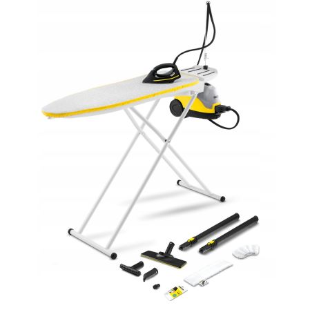 Stanowisko do prasowania SI 4 zadowoli nawet najbardziej wymagających klientów. Składa się z deski AB 1000, parownicy oraz żelazka. Zaletą deski jest funkcja nadmuchu oraz odciągu pary. Funkcja odciągu pary – odsysa nadmierną ilość pary, dzięki czemu tkanina po prasowaniu pozostaje sucha. Jest to szczególnie pomocne przy prasowaniu grubych materiałów (jeans, len). Funkcja nadmuchu – umożliwia prasowanie bardzo delikatnych tkanin takich jak jedwab czy tiul bez zagnieceń. Czas prasowania krótszy o 50% – żelazka parowe Kärcher, dzięki wysokiemu ciśnieniu pary, pozwalają prasować o 50% szybciej nawet grube, wielokrotnie złożone tkaniny. Do czyszczenia – parownica SC 4 znajdująca się na wyposażeniu stanowiska posiada komplet akcesoriów do czyszczenia wodoodpornych powierzchni w całym domu. EasyFix to nowy system mocowania pada z mikrofibry na dyszy podłogowej (na rzep). Umożliwia jego zdejmowanie i zakładanie bez potrzeby schylania się. Zmiana pada odbywa się bez kontaktu rąk z brudem.