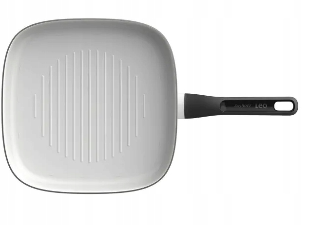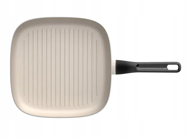 Aluminium pochodzące z recyklingu zapewnia szybkie nagrzewanie i równomierne rozprowadzanie ciepła, a karbowana powierzchnia grilla tworzą typowe ślady grillowania i pozwalają na odprowadzenie tłuszczu i wilgoci, zapewniając wyjątkowo chrupiące rezultaty. Patelnia grillowa jest wyposażona w nienagrzewający się uchwyt zapewniający wygodny i pewny chwyt.