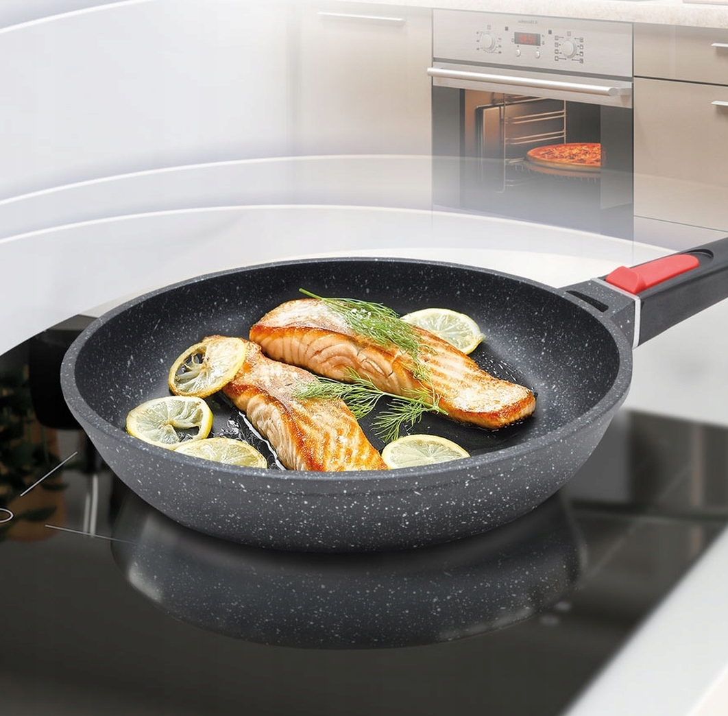 Patelnia aluminiowa z powłoką granitową oraz dnem indukcyjnym i odpinaną rączką