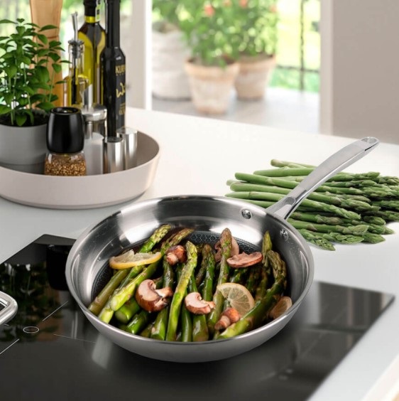 - stali nierdzewnej z odporną na zarysowania powłoką antyadhezyjną – rdzeń – aluminium dla lepszego rozmieszczenia