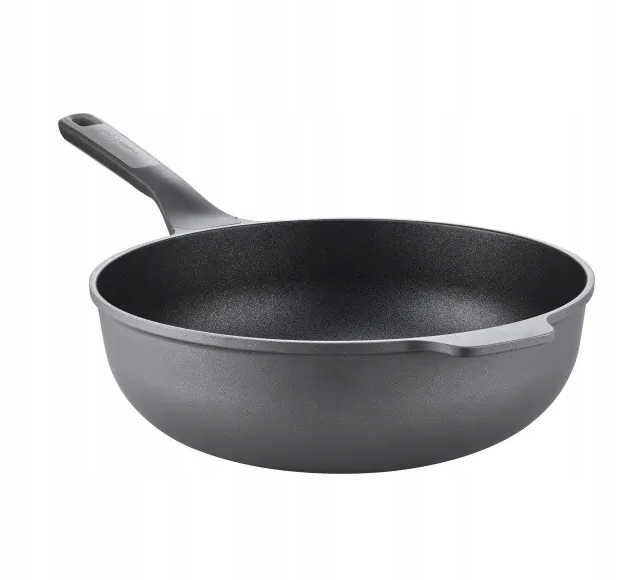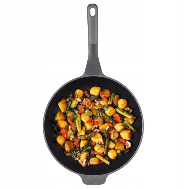 Czy ktoś ma ochotę na zdrowe danie z woka, aromatyczną paellę lub pikantne risotto? Z tą patelnią błyskawicznie przygotujesz najsmaczniejsze potrawy kuchni chińskiej czy tajskiej. Korpus patelni wykonany jest z odlewu aluminium pochodzącego z recyklingu i gwarantuje szybkie i równomierne rozprowadzanie ciepła na każdym rodzaju płyty kuchennej, również na indukcji.