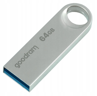 Pendrive GOODRAM 64 GB UNO3 Silver USB 3.2 to kompaktowe i stylowe urządzenie o metalowej obudowie, zapewniające trwałość i elegancki wygląd. Dzięki interfejsowi USB 3.2 oferuje szybki transfer danych, idealny do przechowywania i przenoszenia plików.