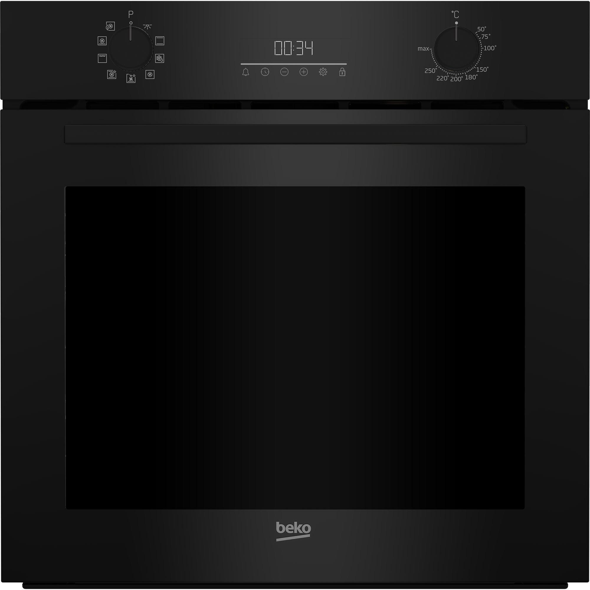 Piekarnik Beko 72L, czarny. Wydajny termoobieg AeroPerfect, pieczenie 3D i samoczyszczenie pyrolityczne. Posiada prowadnice teleskopowe, drzwi SoftClose. Klasa energetyczna A+.