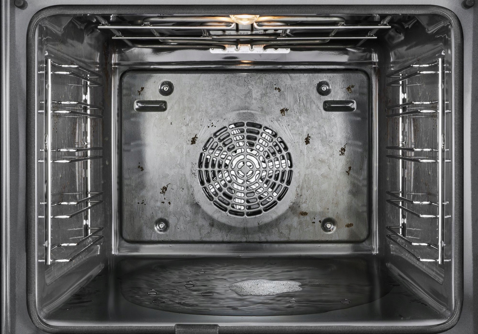 Piekarnik jest lekko zabrudzony i chcesz go szybko wyczyścić? Wystarczy umieścić ok. 400ml wody i kroplę detergentu do mycia naczyń na dnie piekarnika, następnie nastaw odpowiednią funkcję grzania, temperaturę oraz czas. Ta przyjazna dla środowiska metoda czyszczenia zmiękcza resztki powstałe po pieczeniu. Wystarczy je wytrzeć ściereczką, a cały proces czyszczenia jest szybki i nieskomplikowany.