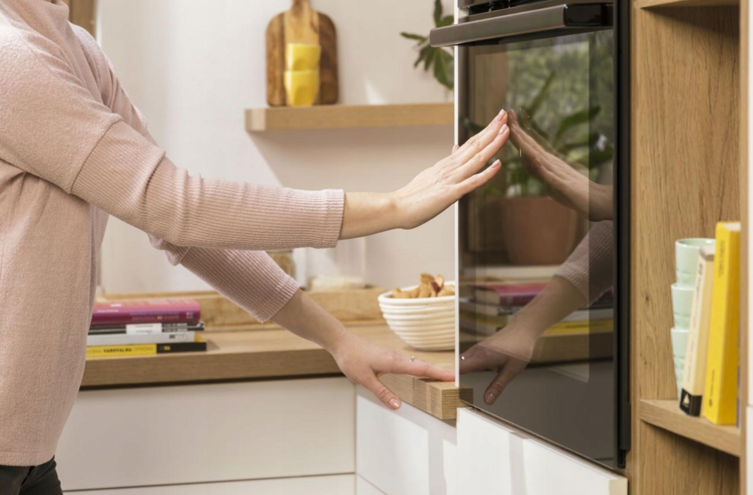 Płynne otwieranie i zamykanie drzwi piekarnika, bez żadnego hałasu, wystarczy delikatny dotyk.