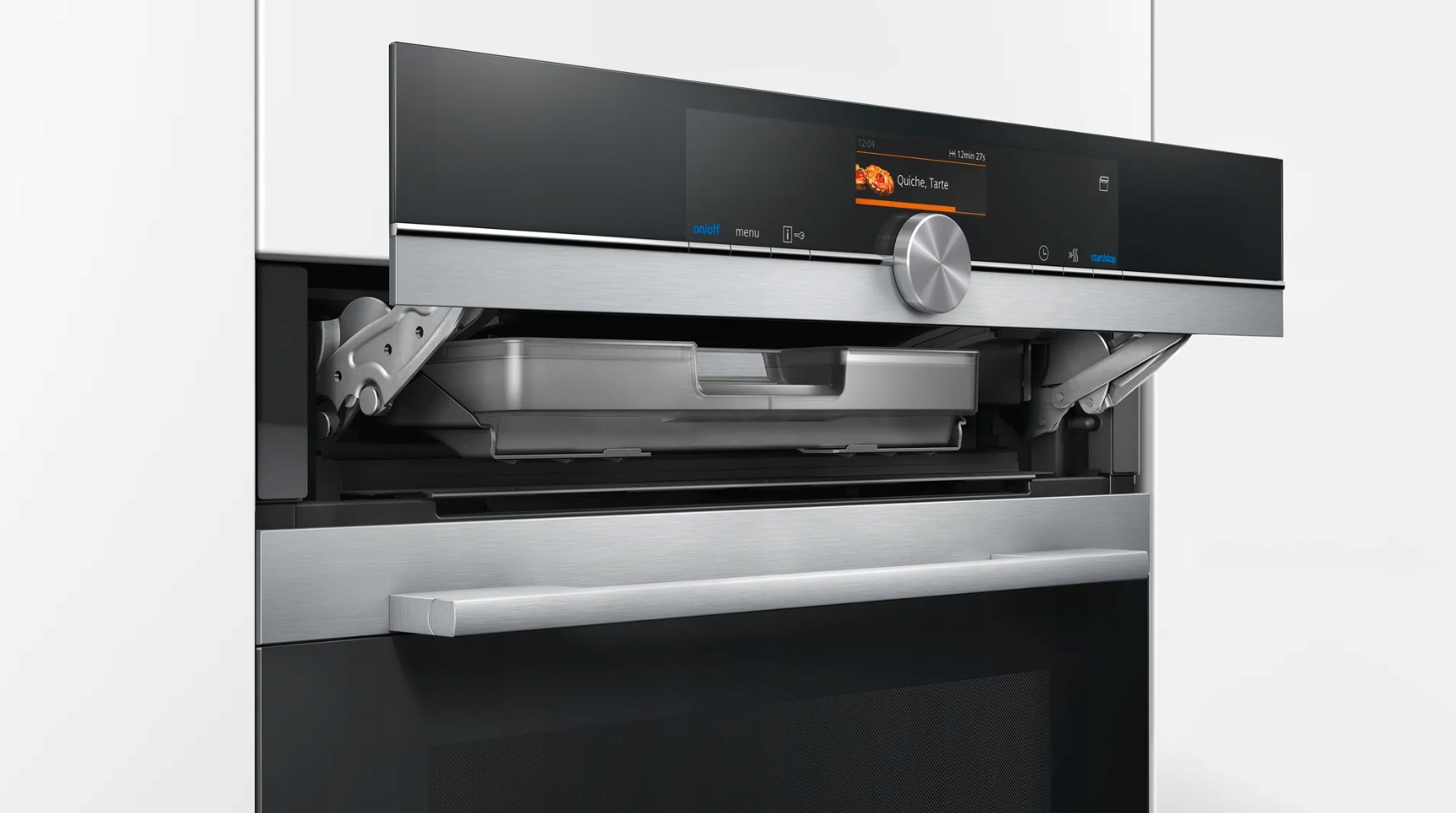 Kompaktowy piekarnik do zabudowy z parowarem o pojemności 47l i szerokości 60cm. Posiada wyświetlacz dotykowy TFT.