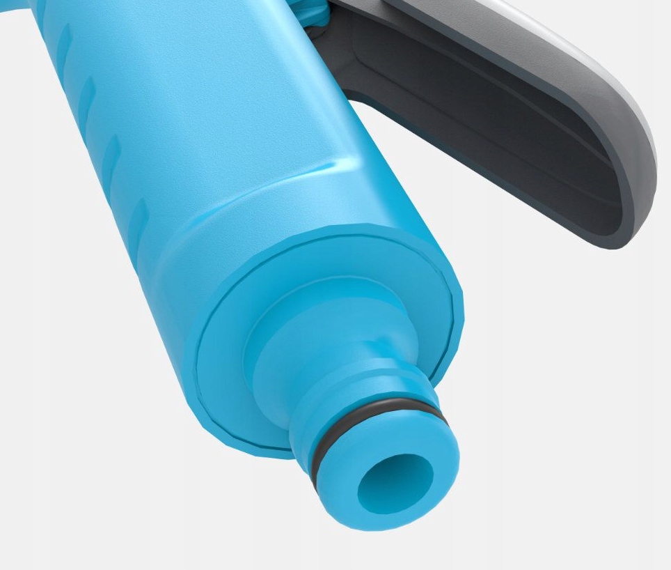 Zraszacz został wykonany z wysokiej jakości tworzyw sztucznych, a jego uchwyt został skonstruowany w taki sposób, aby idealnie dopasowywał się do kształtu dłoni każdego użytkownika. Taka budowa pozwala na długotrwałą pracę w ogrodzie bez zmęczenia.
