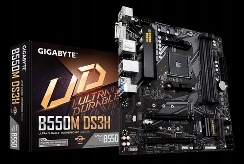 Gigabyte B550M DS3H to płyta główna Micro-ATX przeznaczona dla graczy. Socket AM 4 gwarantuje kompatybilność z procesorami z rodziny AMD. Konstrukcja posiada gniazda PCIe 4.0 zarówno dla kart graficznych jak i dysków M.2 gwarantując wysoką przepustowość danych. Dzięki kompaktowym wymiarom można ją zamontować w mniejszych obudowach oszczędzając miejsce na biurku.