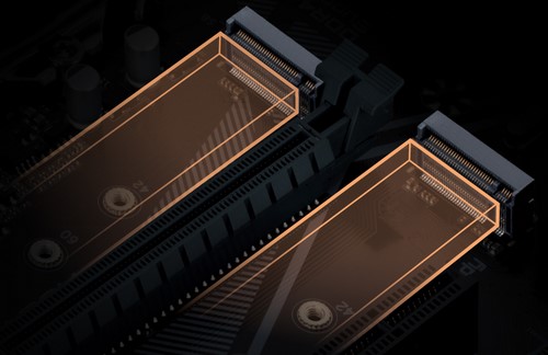 Gigabyte B550M DS3H korzysta z technologii AMD Store MI zwiększającej efektywność pracy dysków. W przypadku posiadania zarówno SSD jak i HDD, następuje ich programowe scalenie. Proces adaptacji analizuje najczęściej używane dane oferując szybszy dostęp do nich.